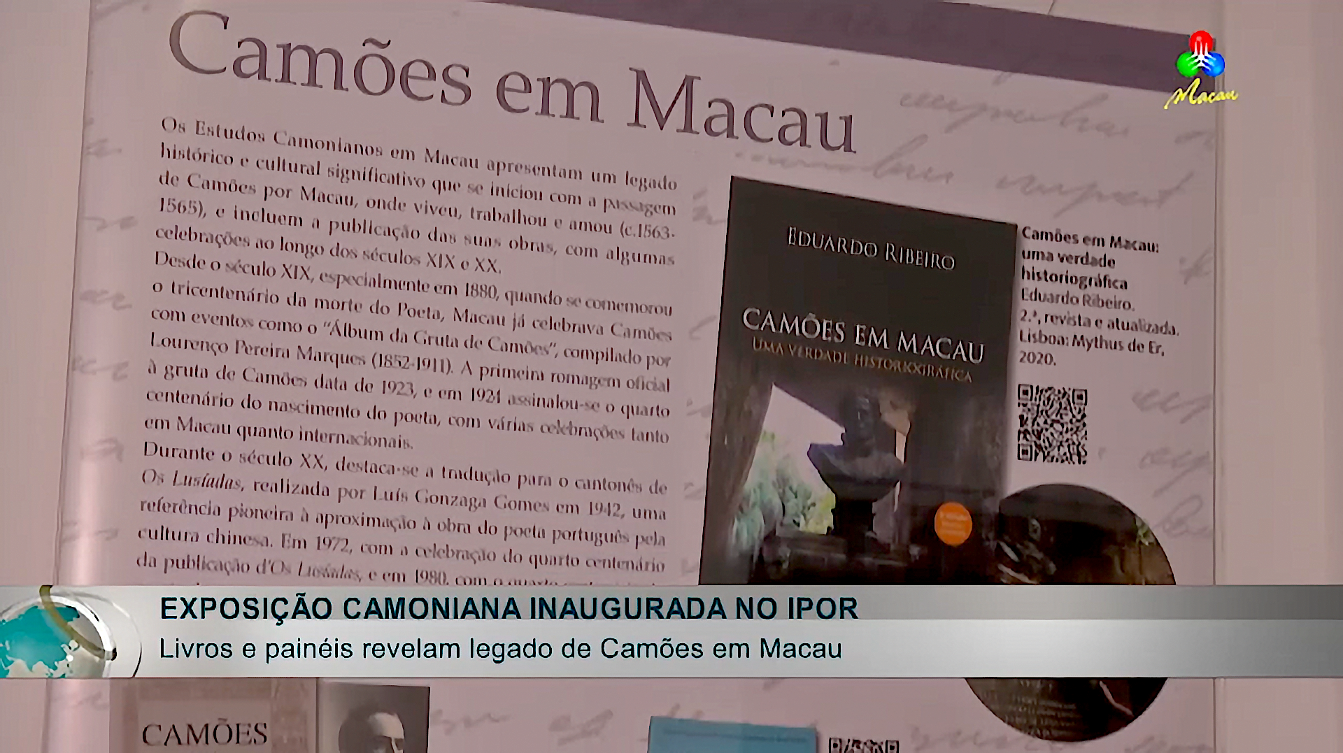 Foi hoje inaugurada uma exposição dedicada a Luís de Camões. A mostra reúne livros e painéis temáticos, que revelam a presença e o legado do poeta em Macau, e tem curadoria de José Carlos Canoa, membro da Rede Camões na Ásia & África.